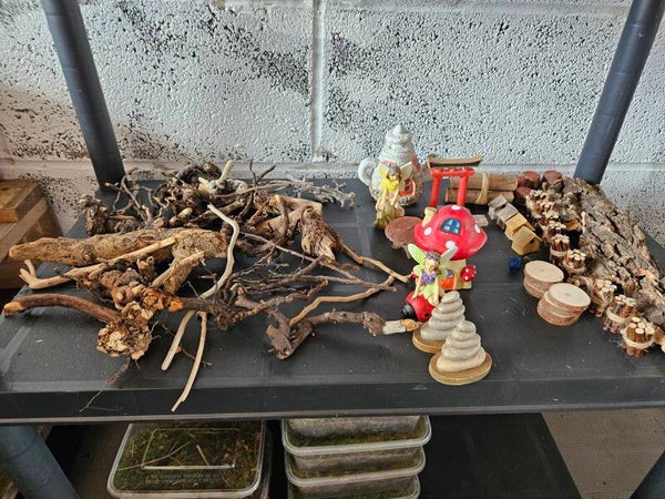 Contains a big jar, small stones, sand, charcoal, moss, plant, big stones, wood, dabber, tweezers. Everything you need to make your own terrarium. You may need a small brush or cloth to clean the jar on the inside. 2 big stones and 1 piece of wood will be my choosing to what will look good for the terririum.